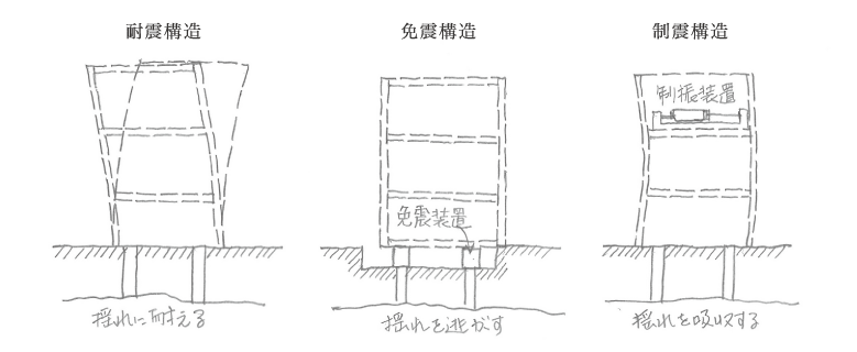 地震などから家を守る構法のうち、一般的なものが「耐震」「免震」「制震」の三つです。